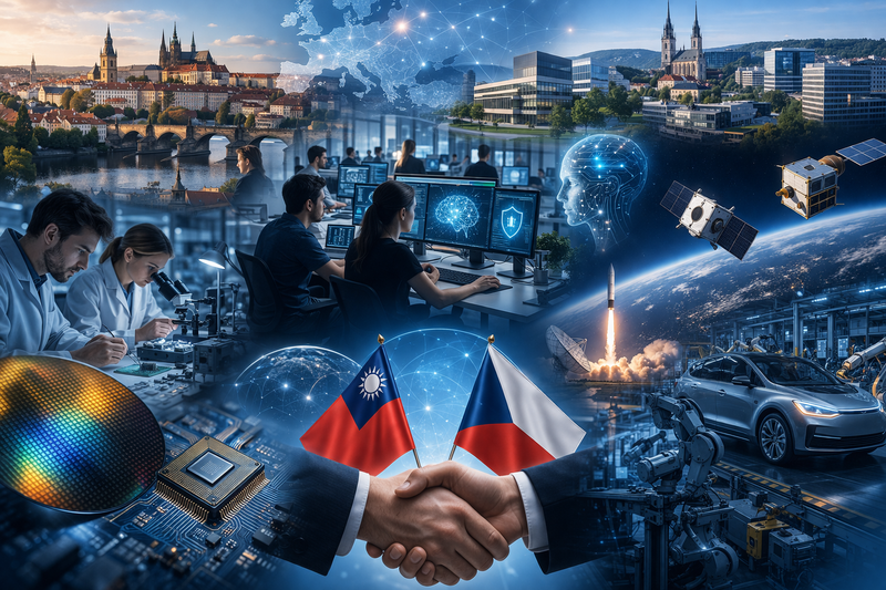 捷克生態強在軟體整合、歐盟法規合規(CE/GDPR/NIS2)、AI演算法、RISC-V/嵌入式;台灣優勢在硬體量產、晶片設計、供應鏈韌性、AIoT元件。 雙方已在半導體(ACDRC)、太空(Tensor Tech MoU)有實質平台,2026年可擴大至:
